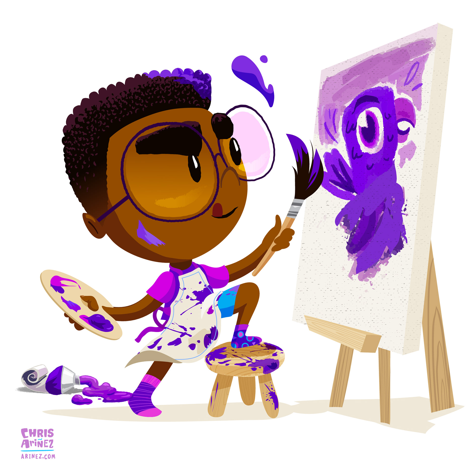 "I Paint Purple" is a story written by Lilla Rogers for the course, where I developed this young artist character, along with a cover design and two-page spread from the story.